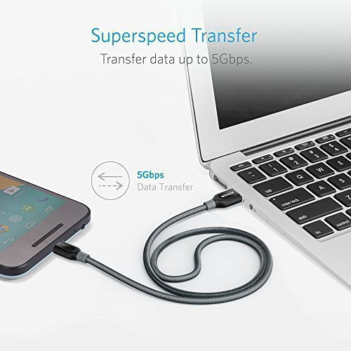 Câble USB C Anker PowerLine+ USB Type C de 90 cm en nylon tressé vers USB 3.0 Extra Solide avec une Pochette pour Appareils USB C (Samsung Galaxy S8 / S8+, S9, nouveau MacBook, Huawei P10, Google Pixel, Nexus 6P, HTC 10, Sony XZ, LG V20 G5 G6, HTC 10, Xiaomi 5 …)