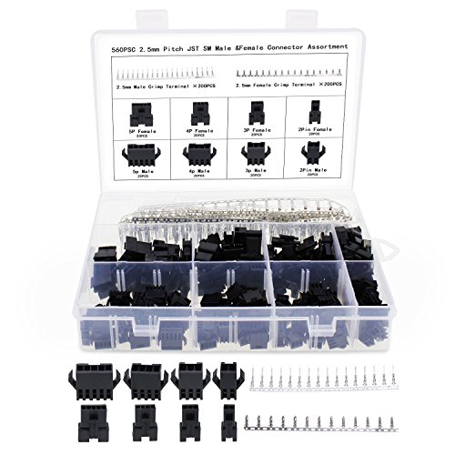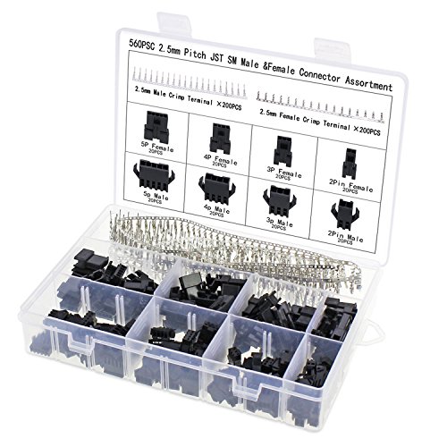 - Le paquet comprend 560 pièces 2,5 mm pitch 2,3,4,5Pin JST SM connecteur et connecteur mâle et femelle.