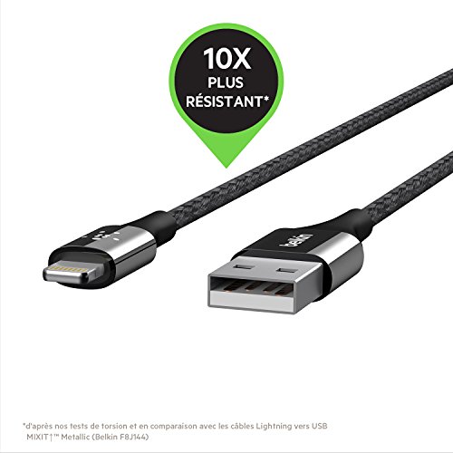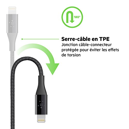 Belkin - Câble Lightning Premium Haute-Résistance (Kevlar DuraTek) Charge/Sync pour iPhone et iPad - 1,2m - Compatible iPhone 8/8+ et iPhone X - Noir (Certifié MFi)