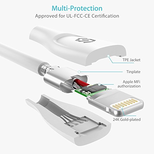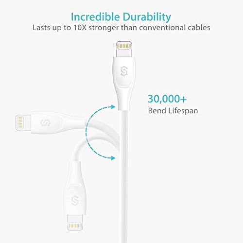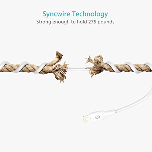 - [MFI Certifié Apple] - Ce câble iPhone Syncwire contient une puce d'autorisation émise par Apple qui assure que votre appareil se synchronise et se recharge à la vitesse maximale et en toute sécurité. Il est automatiquement compatible avec les nouvelles versions du système iOS.