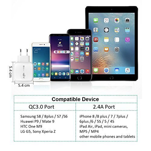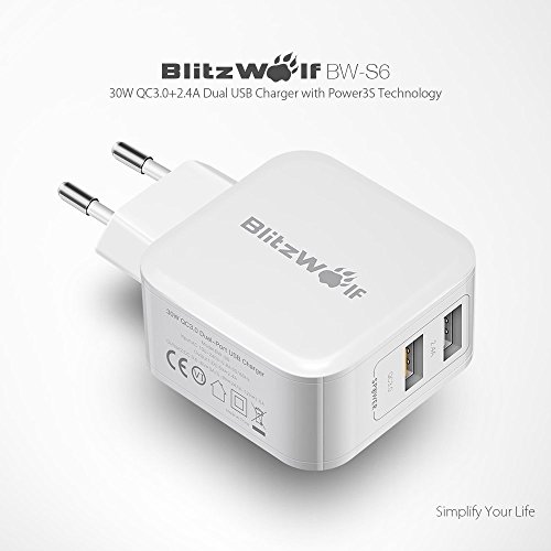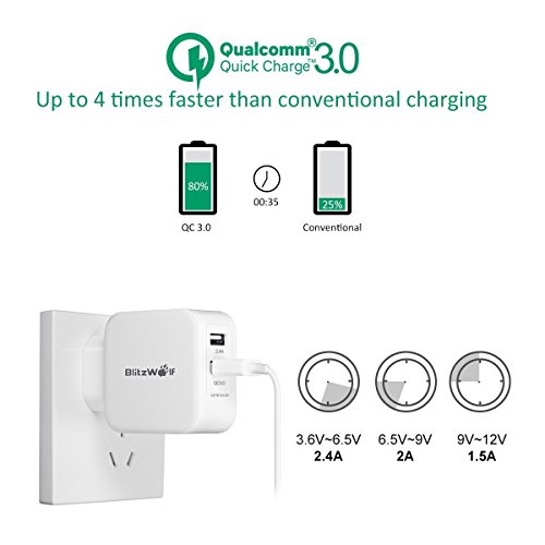 - ♛【Qualcomm Quick Charge 3.0】-- Il est à ce jour le plus rapide et dernière tech. BlitzWolf chargeur secteur usb 30W avec tech QC3.0 peut charger des dispositifs atteindre jusqu'à 80% dans les 35 minutes. Rétrocompatible avec le dispositif Quick Charge 2.0.