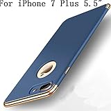 IPhone 7 Plus Coque, Heyqie 3 in 1 Ultra-thin 360 Full Body Anti-Scratch Shockproof Hard PC Non-Slip Skin Smooth Back Cover Coque with Electroplate Bumper For Apple iPhone 7 Plus 5.5" - Blue