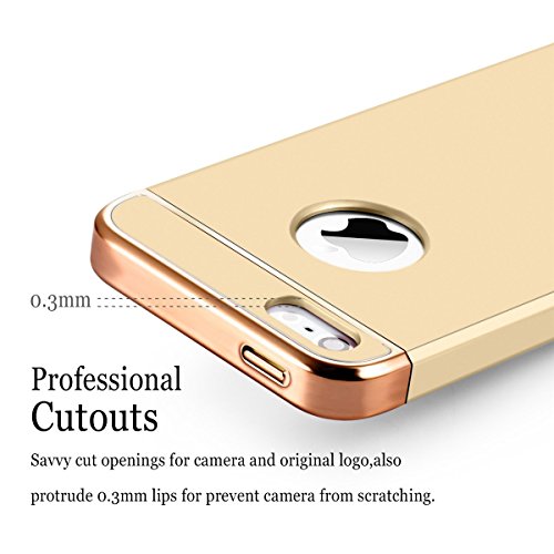 - HYBRID 3 en 1 Conception: Les cadres galvanisés supérieurs et inférieurs détachables ont vraiment l'air élégant et brillant. La conception en trois étapes rend l'iPhone SE/5S/5 facilement enlevé et installé. Les trois sections s'accrochent solidement et en toute sécurité.