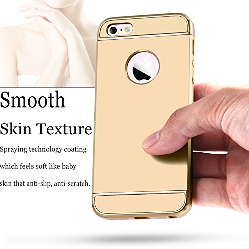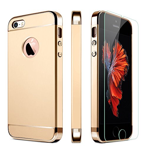 Coque iPhone SE, PRO-ELEC iPhone 5 5S SE[Plein Ecran en Verre Trempé Protecteur] 3 en 1 Protection PC Housse [Ultra Mince] Non Slip Surface Antichoc & Electro Placage Texture Protector Pour iPhone SE/5S/5 (4.0") - Or