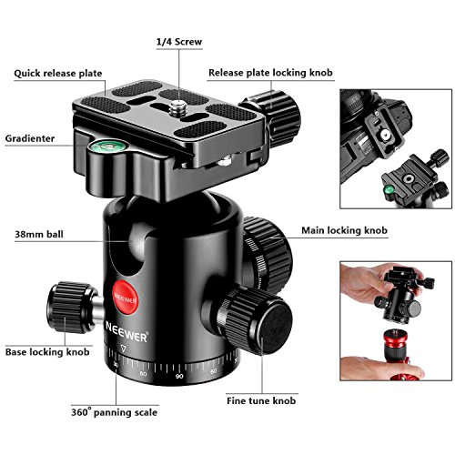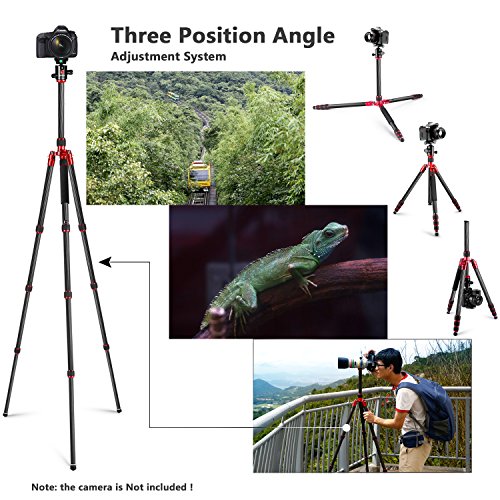 - 360 degré cadran de pivotement tête sphérique avec un niveau à bulle vous fournir une vue panoramique. Système de réglage de l'angle jambe à trois positions fournit la prise de vue flexible.