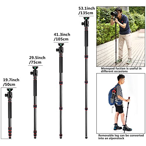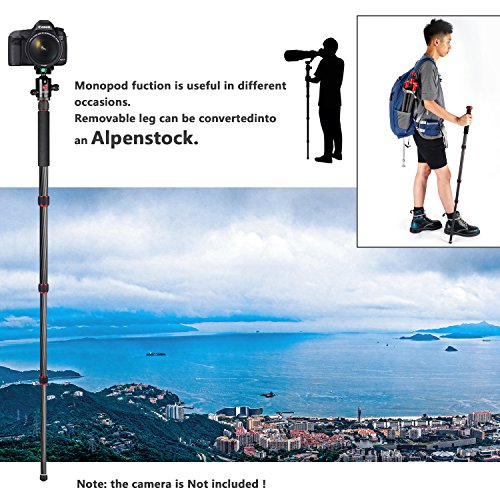 - 2-en-1 trépied, enlevé une jambe peut être utilisé comme monopode et converti en alpenstock.