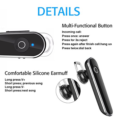 - 【Qualité Sonore 】--- Le mini oreillette wireless puce CSR intégrée et système de réduction du bruit intelligent, peuvent être automatiquement bruit éliminer, résister au cryptage efficacement, font de votre appel plus claire. Vous pouvez profiter de la meilleure qualité sonore meme si dans le bourdonnement de la foule.