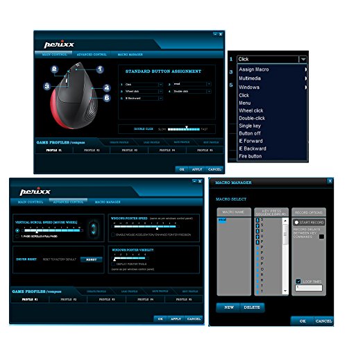 - Accès facile à une utilisation multiple grâce à 6 boutons (5 boutons programmables). Le programme puissant vous offre 5 boutons programmables et un réglage avancé. Pour télécharger et mettre à jour le programme, visitez le site Web de Perixx.
