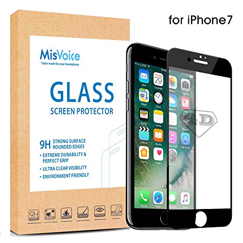IPhone 7 Protection D'écran, 2017 Nouvelle Arrivée Misvoice 4D Full Film en Verre Trempé Anti-Rayures de Protection Avec écran Incurvé, Housse Bord à Bord, écrans Transparents à Partir de Chute HD, Sans Bulles, Résistant Aux Chocs (4.7 Noir)