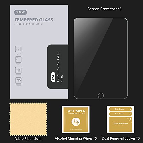 Verre Trempé iPad Air 1/ 2 SUERW [2 Pack] Vitre Film Protection écran pour iPad Air 1/ Air 2/ Pro 9.7-inch (0.33mm, Dureté 9H, Ultra HD)