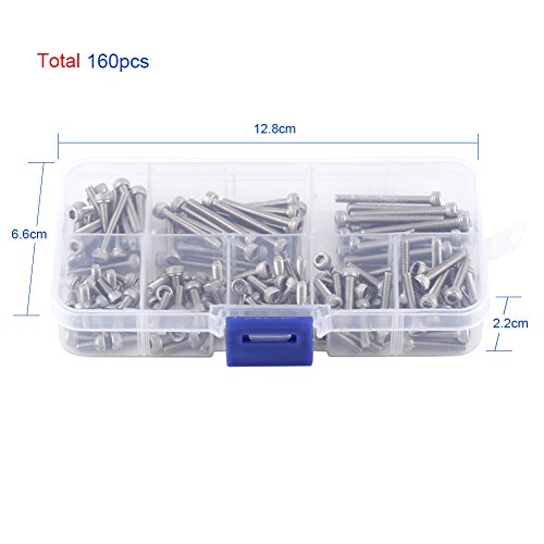 160pcs Coffret de Vis Boulon Hexagonale à Tête Cylindrique en Acier Inoxydable 304 M3 x 6/8/10/12/16/20/25/30mm 1Boîte /160Pcs