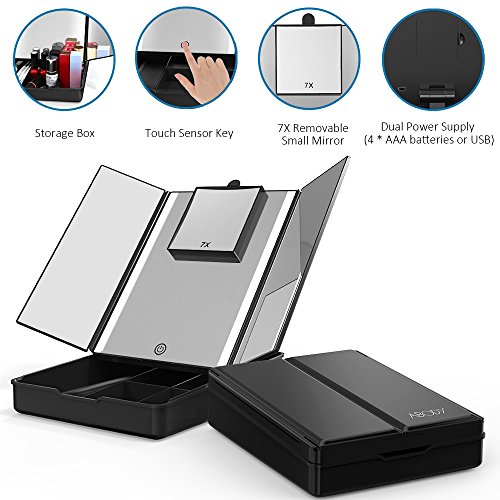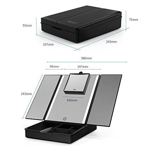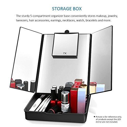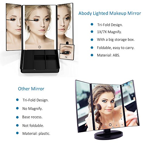 - 【Nouveau design】ABODY Miroir Maquillage LED avec en boîte,la base recess peut contenir des bijoux ou des cosmétiques comme montre, boucles d'oreilles, bracelets, etc cadeau parfait pour les dames et les filles.