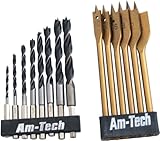 Am-Tech Set de mèches à bois à queue hexagonale...