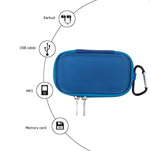 AGPTek Etui Rigide Nylon pour Ranger et Protéger Mp3/ Ecouteur/ Clé avec Double Filet et Double Zip pour A02, Bleu