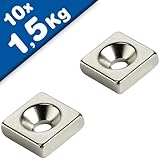 Aimant Bloc avec trou 10 x 10 x 3mm Néodyme...