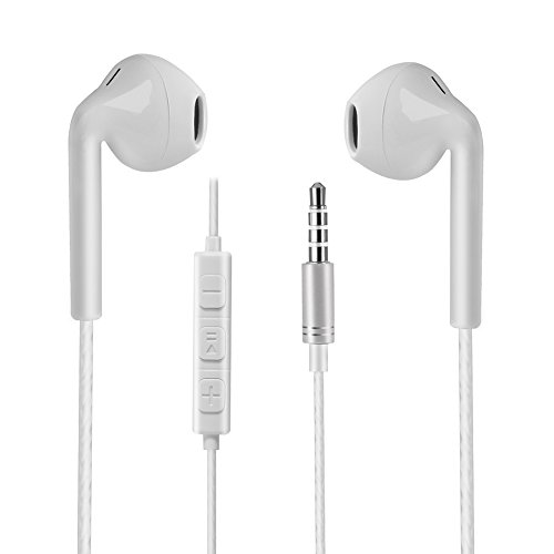 Écouteurs Anti-bruit ergonomique, Yokimico oreillette filaire stéréo avec Microphone intégré &multifonction compatible avec iPhone, iPod, iPad, Android Smartphone, Tablet, MP3 Blanc