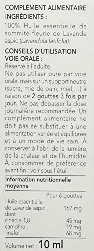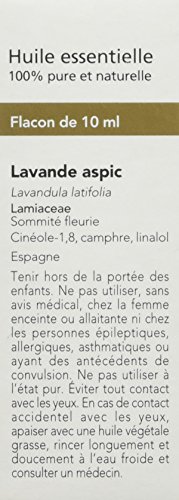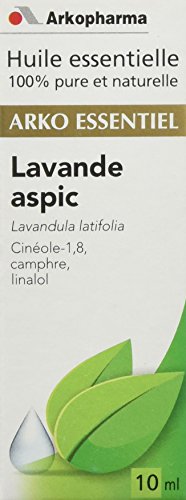 Arkopharma Arko Essentiel Huile Essentielle de Lavande Aspic 10 ml est une huile essentielle 100% pure et naturelle.Les huiles essentielles, substances aromatiques volatiles d'origine végétale sont extraites par distillation de la partie de la plante la plus riche en essence ou par expression à froid du zeste dans le cas des agrumes. Elles séduisent depuis des millénaires par leur parfum et leurs propriétés.L'huile essentielle de lavande aspic est reconnue pour ses multiples propriétés : elle est anti-toxique, anti-douleur, cicatrisante (idéale pour les problèmes de peau), et au niveau mental, elle tonifie et a des propriétés anti-fatigue.