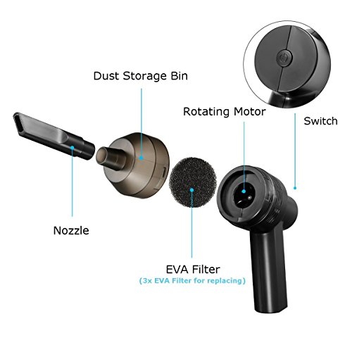 - ASPIRATION PUISSANTE: Aspirateur rechargeable avec 2000mAh Li-batterie, fournit une aspiration puissante, facile à nettoyer des poussières, cheveux, miettes, scraps pour ordinateur portable, clavier, trousse de maquillage, voiture, maison pour animaux de compagnie.