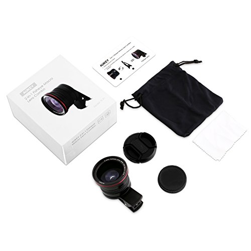 - Contenu de l'Emballage : AUKEY Objectif Smartphone 2 en 1 Kit (1 x Objectif Fisheye, 1 x Objectif Macro), 1 x Pince, 1 x Chiffon, 1 x Petit sac pour Objectif. Aukey vous offre une Garantie de 24 MOIS