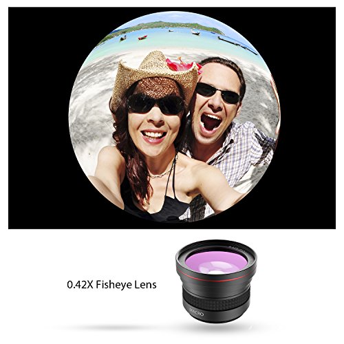 Ces lentilles sont de bonne qualité, qui ne présente aucun signe d'éblouissement ou de reflets. 0.42 X Objectif Fisheye à 180°