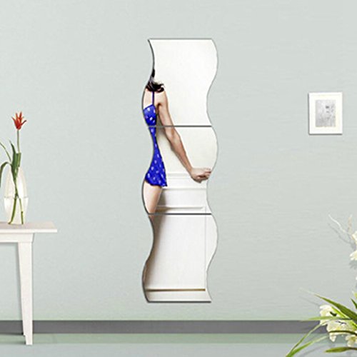 6pcs Miroir de Mur Carree Autocollant Motif de Vagues d'Argent Murales de Style Chambre d'enfant Decoration