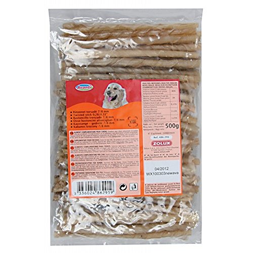 Les batonnets torsadés au fluor à mâcher sont des friandises de qualité 100% en peau de buffle. En plus d'être délicieuses, ces friandises participent à une bonne hygiène bucco-dentaire du chien. La mastication masse les gencives du chiens et efface la plaque dentaire tout en réduisant la formation du tartre.
