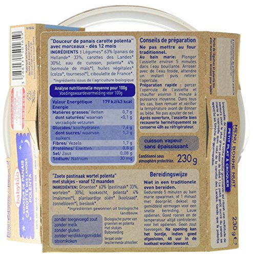 Babybio Assiette Douceur de Panais, Carotte des landes, polenta 12+ Mois 230 g - Lot de 5
