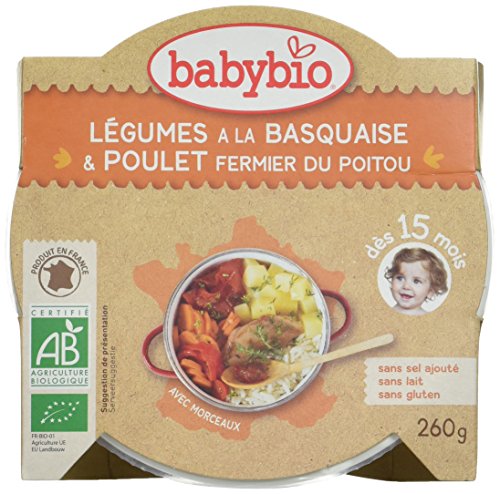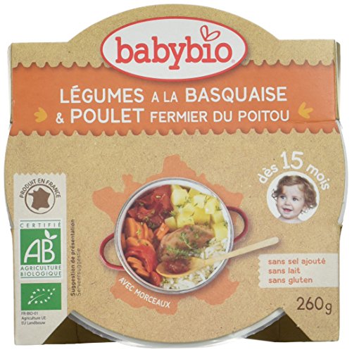 Babybio Assiette Légumes à la Basquaise/Poulet Fermier du Poitou 15+ Mois 260 g - Lot de 4