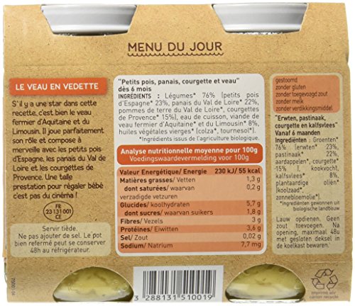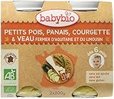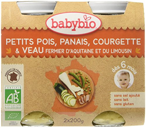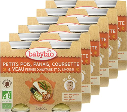 Babybio Pots Petits Pois Panais Courgette/Veau Fermier d'Aquitaine/du Limousin 400 g - Lot de 6
