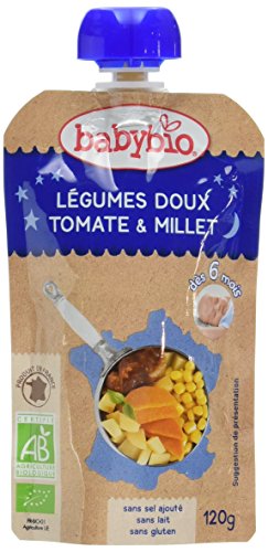 Babybio Gourde Bonne Nuit Légumes Doux Tomate/Millet 6+ Mois 120 g - Lot de 7