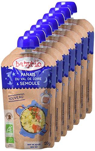 Babybio Gourde Bonne Nuit Panais du Val de Loire/Semoule 6+ Mois 120 g - Lot de 7