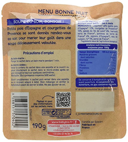Babybio Soupe de Petits Pois/Courgettes de Provence 6+ Mois 190 g - Lot de 6