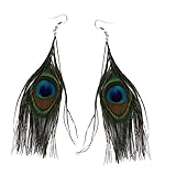 1 Paire Boucles d'oreilles en Plumes de Paon...