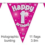 Happy 1st Birthday Pink Holographic Foil...