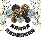 Guirlande à fanions Happy Birthday noir...