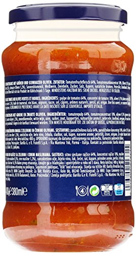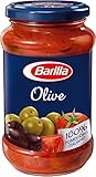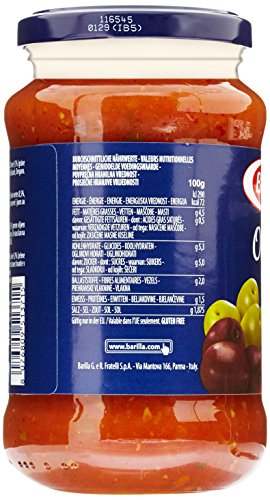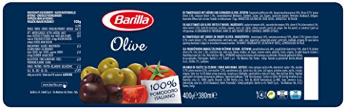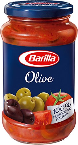 - La sauce « Olive » Barilla est préparée exclusivement avec de la pulpe de tomate, des olives vertes et noires, et un filet d'huile d'olive extra vierge, pour porter à table tout l'arôme d'une recette ancestrale mais toujours séduisante