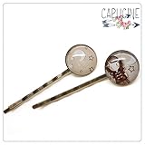 2 pinces bronze cabochons verre fillette...