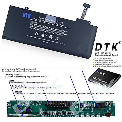 Dtk® Batterie pour APPLE A1322 A1278 (Mid 2009, Early 2010, Early / Late 2011, Mid 2012) Unibody MacBook Pro 13'', fits MB990*/A MB990LL/A MB990J/A+Two Free Screwdrivers - 12 Monate Garantie [Li-Polymer 6-cell 5000mAh/55Wh]