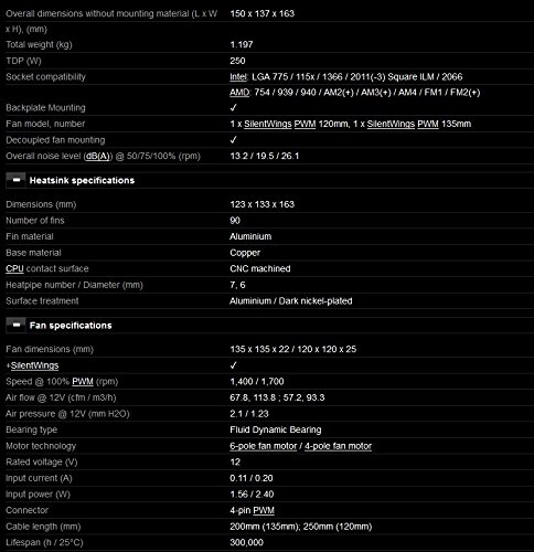 - Diamètre du ventilateur: 120/135 mm; Couleur: Noir, Argent; Matériel: Aluminium, Cuivre, Nickel