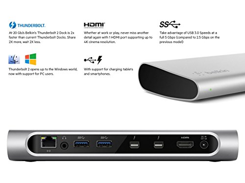 Belkin - Station d'Accueil Thunderbolt 2 Express Dock HD en Aluminium Brossé avec Câble Thunderbolt 1M (Inclus)