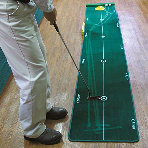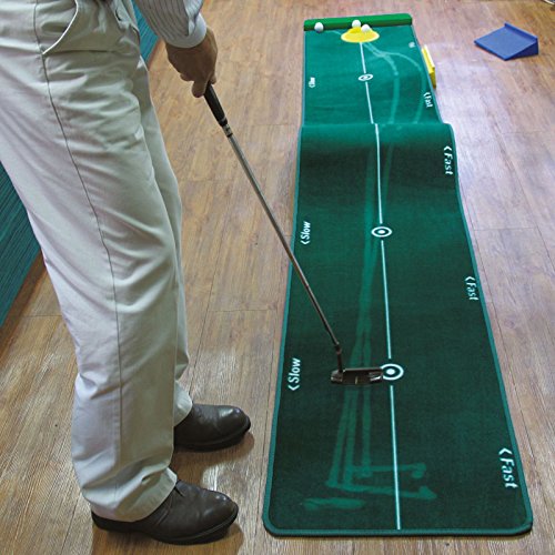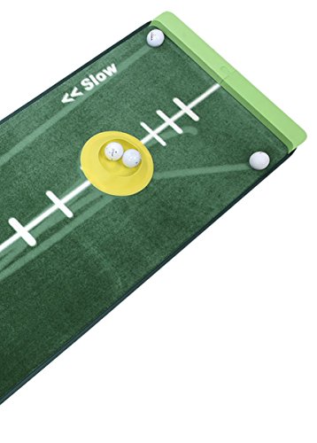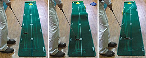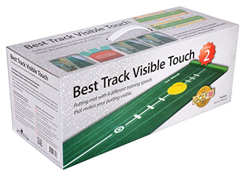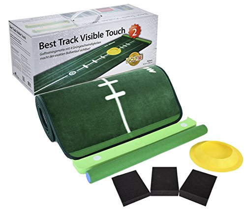 BEST TRACK Putting Mat EDITION 2 a des caractéristiques spéciales qui n'existaient pas précédemment sur le marché. - Tapis extra-long: 3.00 m x 50 cm, un véritable tapis, pas d'herbe artificielle - Ligne centrale pour une meilleure orientation - 5 marquages (chaque 50 cm) afin de déterminer précisément une distance - Un trou de pose librement positionnable pour augmenter le niveau de difficulté - Un dispositif d'arrêt avec fermeture velcro pour des putts trop longs - Permet d'entraîner différentes (quatre) vitesses différentes - Une gomme à effacer pour lisser et nettoyer les lignes visibles de la balle sur le tapis - Au côté "Lent" (vitesse verte normale), les lignes de distance sont enregistrées 1: 2 pour contrôler le mouvement du pendule pendant votre basculer et monter - Au côté "Rapide" (vitesse verte du tournoi), les lignes de distance sont enregistrées 1: 1.5 pour contrôler le mouvement du pendule pendant votre backswing et swing En plus de la haute qualité du tapis et de la longueur, le point culminant de ce tapis de golf est la «visibilité des putts joués». La manipulation est simple: brossez avec la tige d'effacement du tapis dans un sens. Cela élimine toutes les pistes dans une seule direction. Maintenant, vous pouvez jouer contre la direction et vous pouvez voir votre ligne de putt montrant si votre putter a joué la balle à gauche ou à droite au moment de l'impact. Ce Mat rend les écarts minimaux visibles. Pour jouer dans l'autre direction brosse dans la direction opposée correspondante et mettre le gobelet dans le nouvel endroit. Vous pouvez augmenter la difficulté du tapis avec des barrières simulées (gomme à effacer, cales en mousse), mettre ces pièces sous le tapis afin que vous ayez différentes barrières sur le chemin du trou. En raison des fibres spéciales à la surface du tapis et de l'essuie-glace spécial inclus, jusqu'à 4 vitesses différentes peuvent être formés: 12.5 / 10.5 / 10 / 8.5 Matériau: 100% polyester.