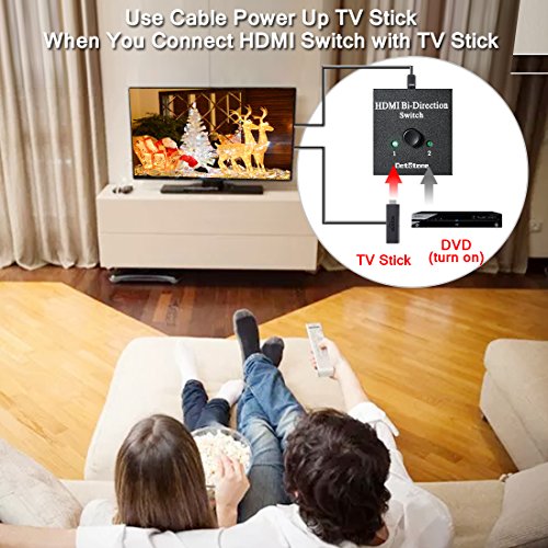 Parce que HDMI- commutateur sans alimentation, Veuillez utiliser le câble USB allumer le stick TV lorsque vous connectez le commutateur HDMI avec le stick TV et ouvrez un autre appareil d'entrée.