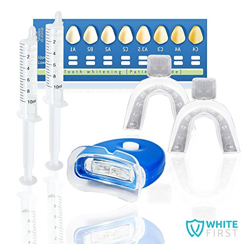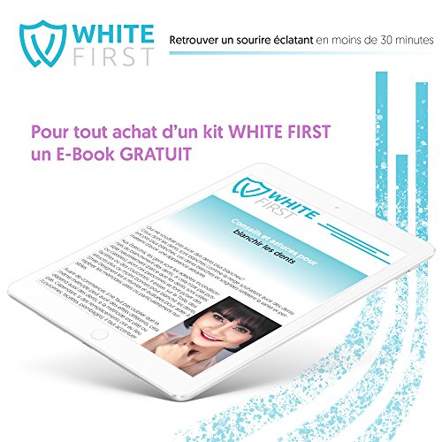 - NOTRE KIT BLANCHIMENT DENTAIRE : Retrouvez notre lampe avec technologie LED by White First ® qui augmente l'effet du blanchissement. Vous recevrez aussi 2 gouttiere dentaire, 20ml de gel blanchiment, 1 plaquette de teinte et une trousse de rangement transparente.