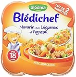BLEDINA. Blédichef Navarin aux Légumes 2x260g Lot de 2 assiettes BLEDINA Blédichef, Couscous des tous petits. 1 plat = 260g. Un repas équilibré conçu pour les besoins des tous petits. Des 18 mois.