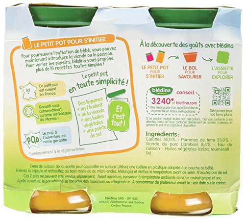Blédina Pots Purée carottes jambon dès 6 mois 200g x 2 - lot de 6