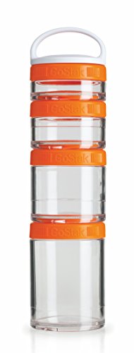 BlenderBottle GoStak Starter 4Pak | boîtes de conservation| Tritan| sans BPA (150ml,100ml,60ml,40 ml incl. poignée de transport) Orange