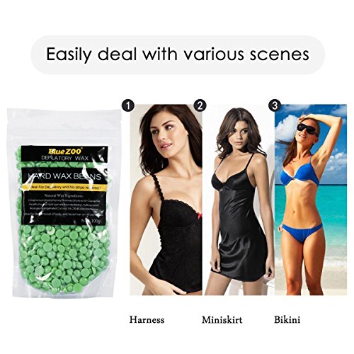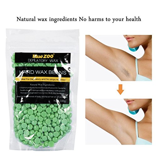 BlueZoo - L'épilation originale Hard Wax Beans - Theier - Idéal pour l'élimination sans douleur des poils sur le corps et la ligne de bikini pour tous les types de peau - 100g (vert)