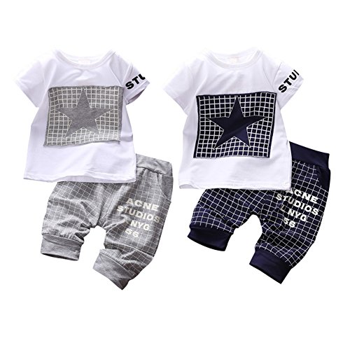 BOBORA Ensemble Bébé Garçon Étoiles Estampes T-shirt + Pantalons (M(1-2Ans), Gris)