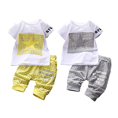 BOBORA Ensemble Bébé Garçon Étoiles Estampes T-shirt + Pantalons (XS(0-6Mois), Jaune)