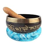 Bouddhiste Chantant Bol Méditation Tibétaine Art Bleu Décor 4 Pouces